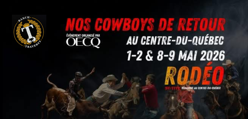 St-Tite débarque au Centre-du-Québec ce printemps. Le RODÉO du Ranch Traversy vous attend les 1, 2, 8 et 9 mai 2026 pour deux week-ends de sensations fortes!